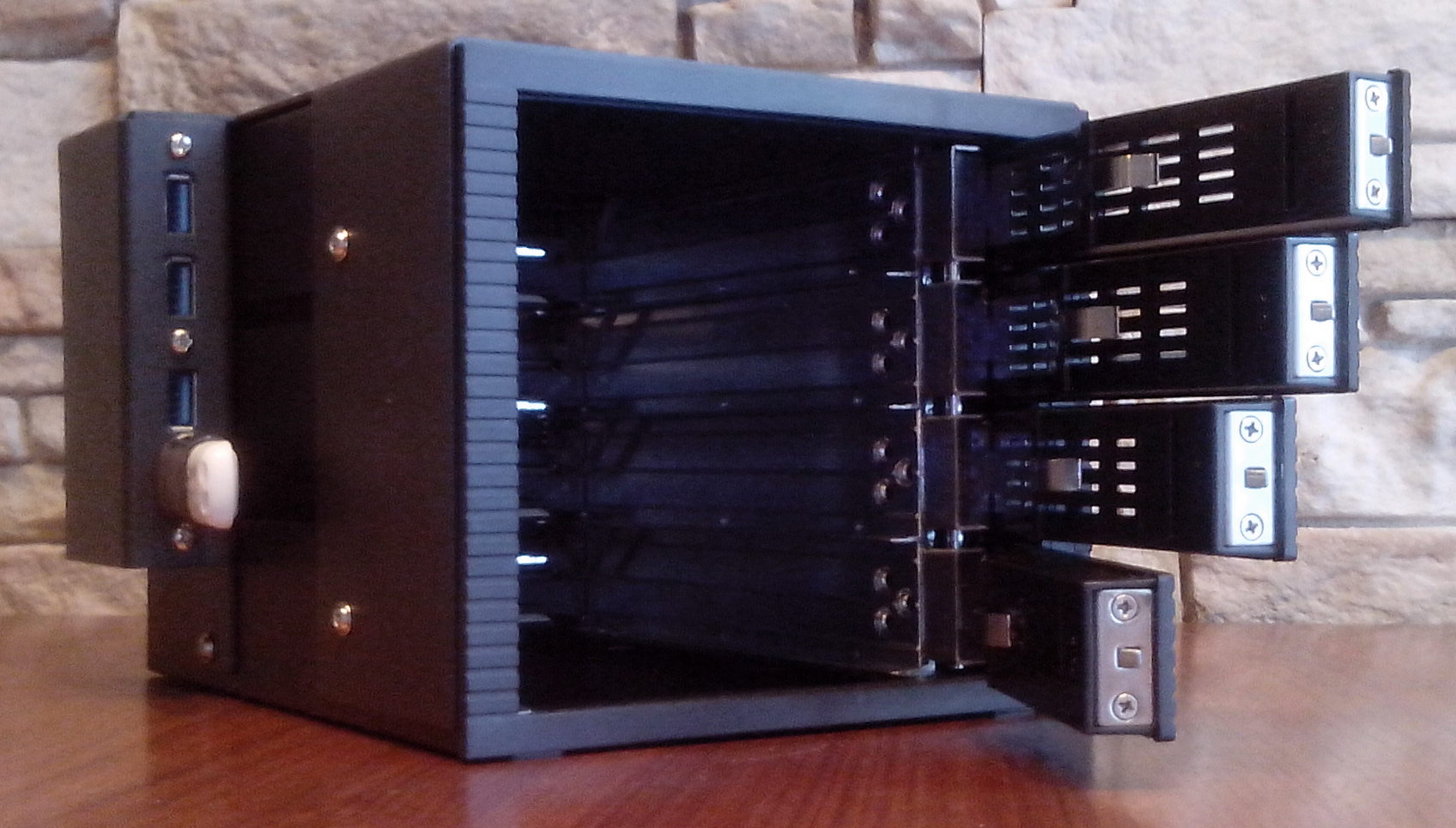 1. 4x 3,5" *) bays for fast docking of SATA I, II, III hdd - speed up to 6 GB/s